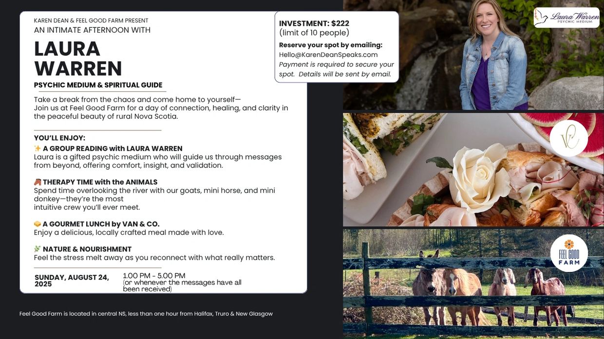 Join us at Feel Good Farm for a day of connection, healing, and clarity in the peaceful beauty of rural Nova Scotia.